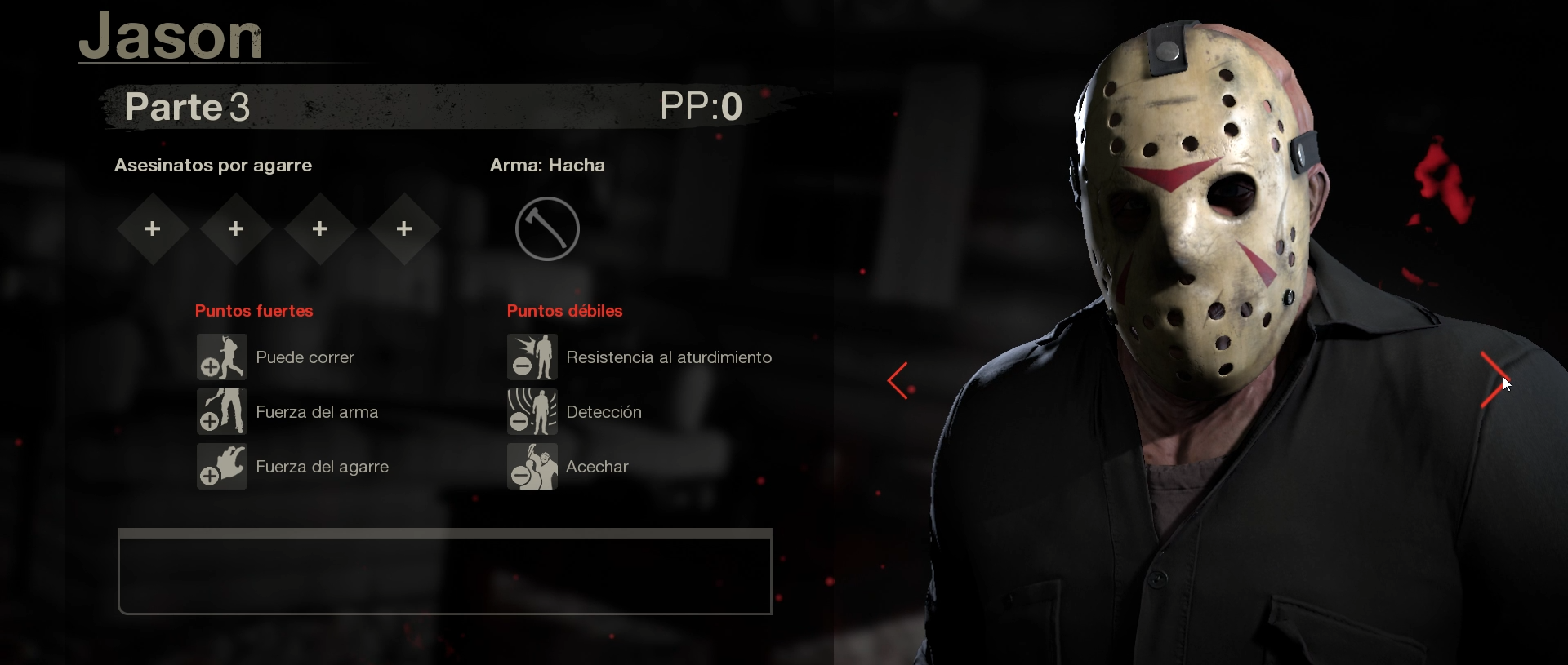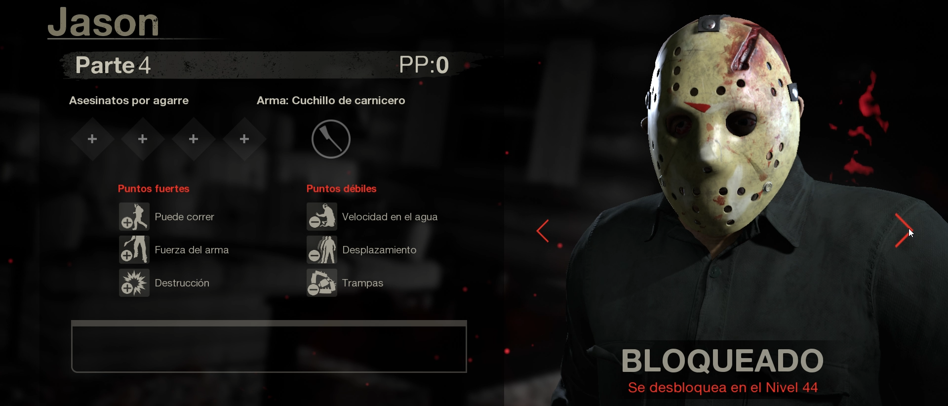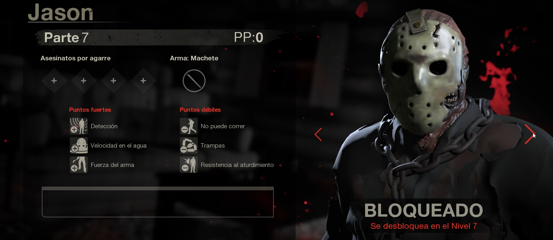 En el videojuego Friday the 13th nos pone en la piel del famoso asesino sin corazón Jason Voorhees o en los extravagantes campistas del lago de cristal. Si en una partida eres Jason gozaras de poderes únicos que el asesino utiliza para cazar a sus víctimas algunas de estos poderes son poder teletransportarte por todo el mapa en busca de campistas y poder avanzar agilmente cuando los estas persiguiendo para poder darles toda clase de muertes horripilantes, aclaramos que el videojuego cuenta con todos los Jason que ha habido a lo largo de las películas y cada uno de ellos cuenta con sus propias armas y habilidades.